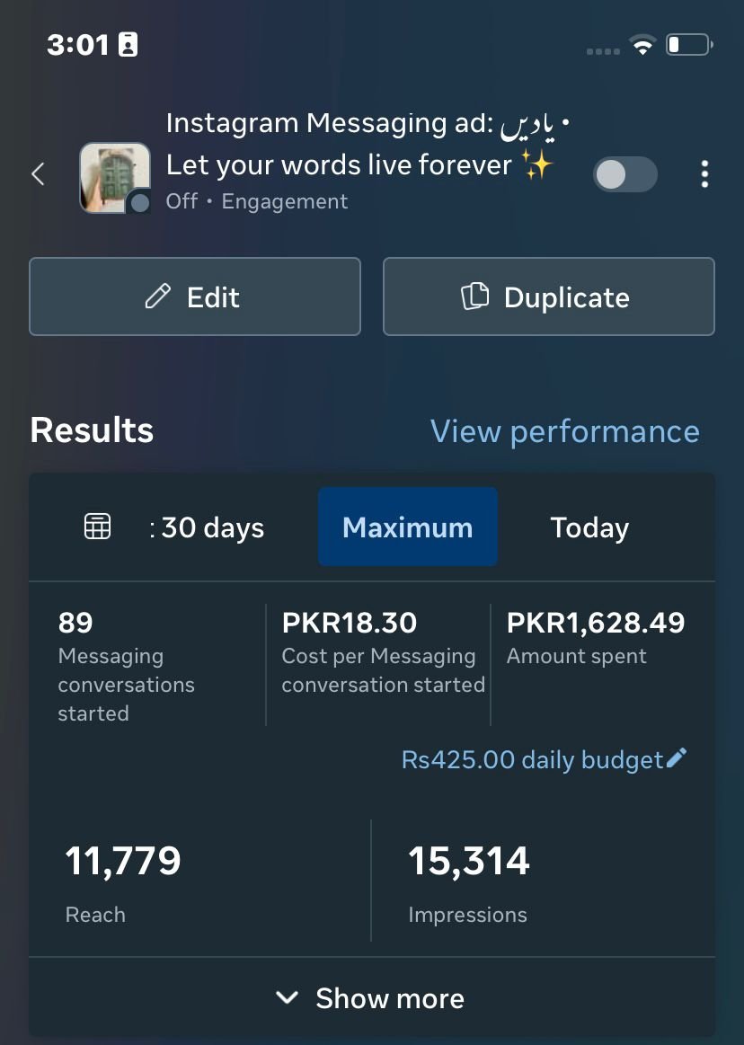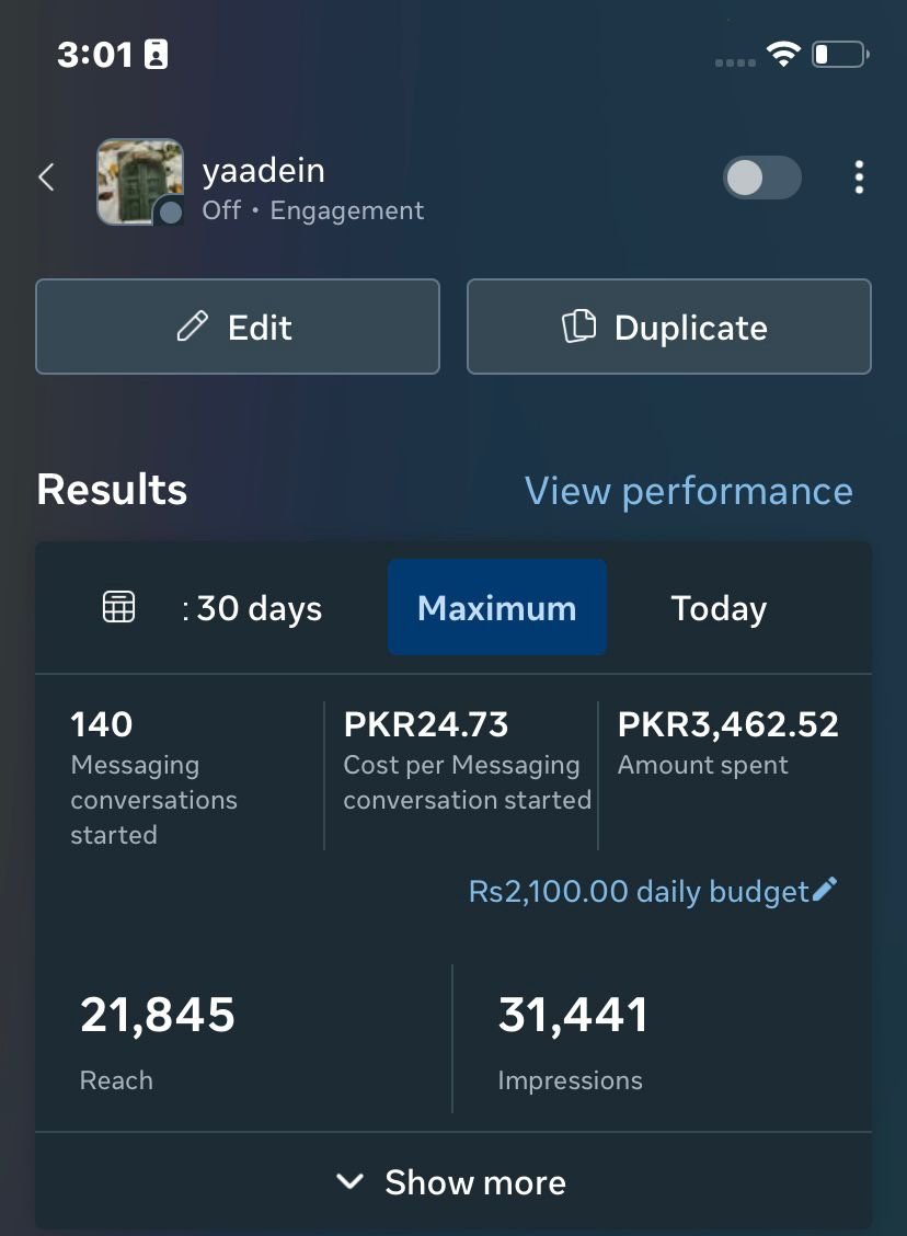 | Engagement | 140+ Conversations | Beyond just “likes,” we generated 140+ direct inquiries via Meta Messaging. In a niche like nostalgic stationery, these “Yaadein-driven” conversations are the bridge to high-intent sales. |